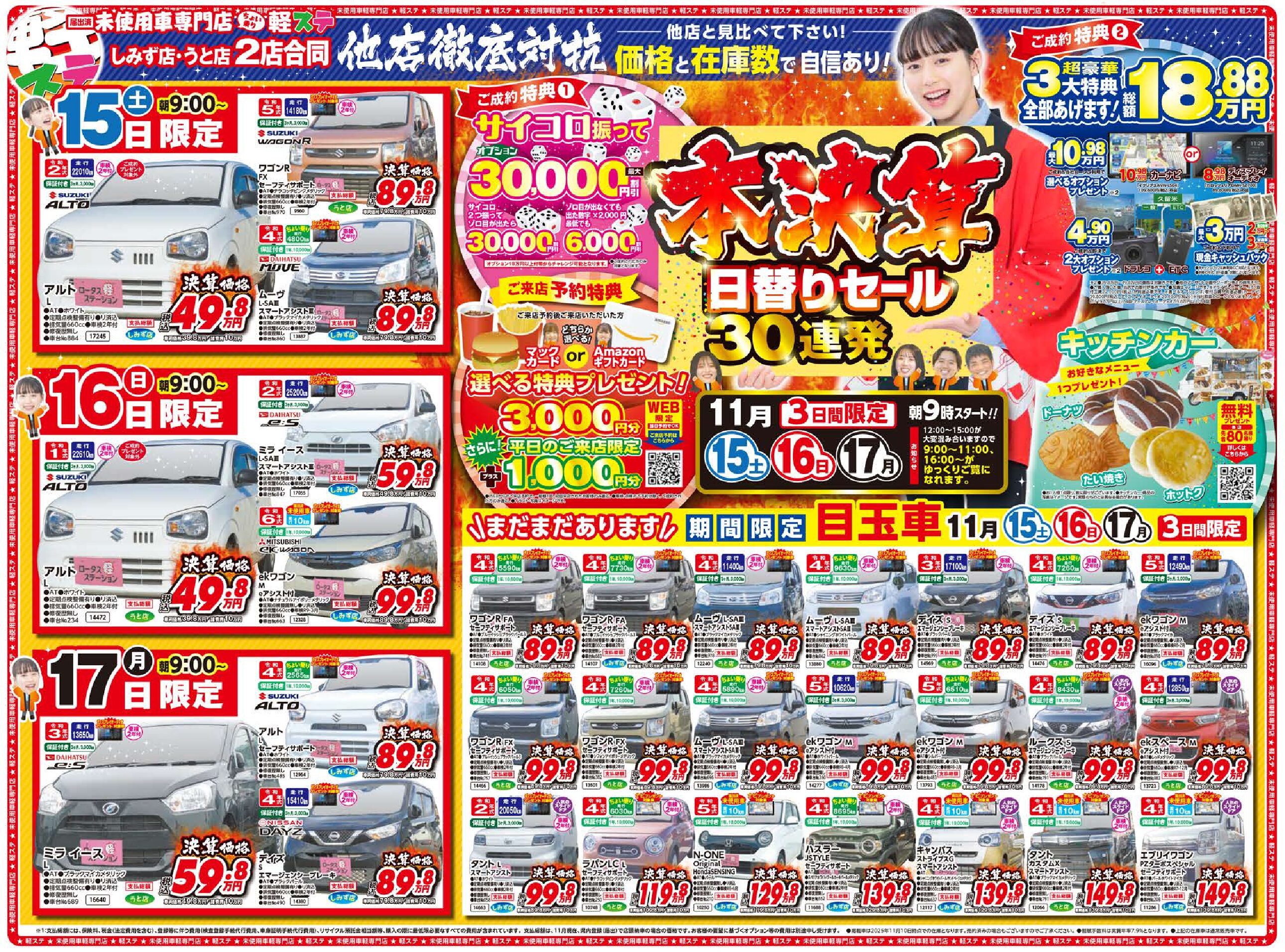 🚗11月【年に一度の大チャンス!】軽ステしみず店・うと店 2店舗合同「本決算!セール」開催🎉