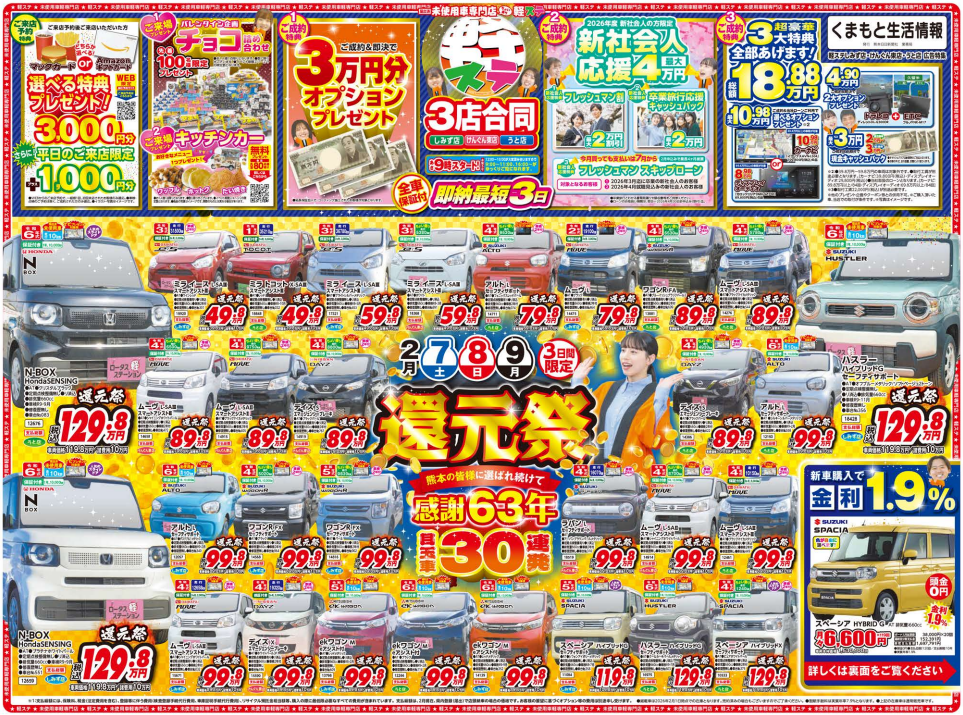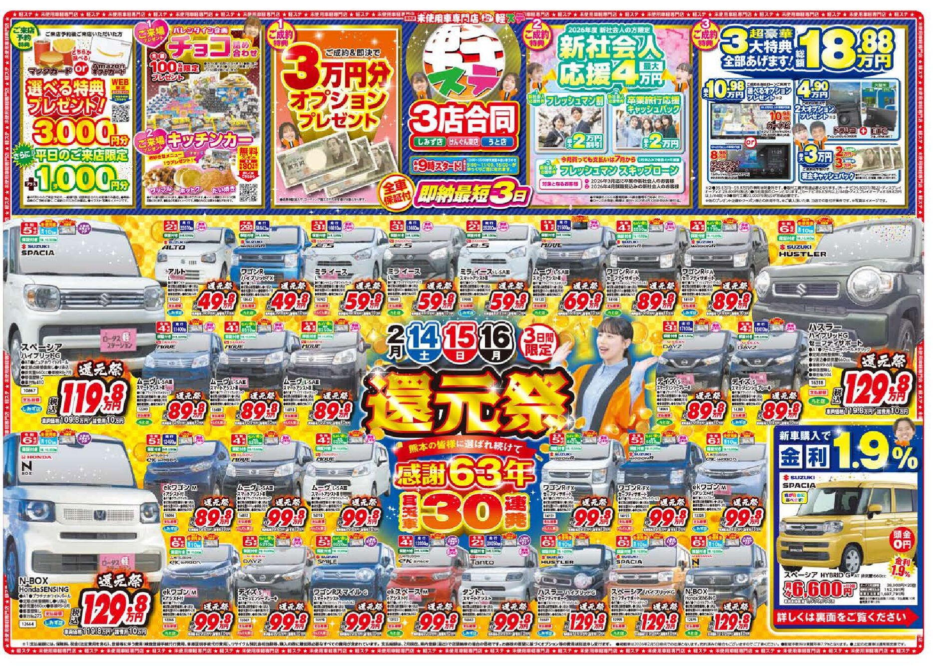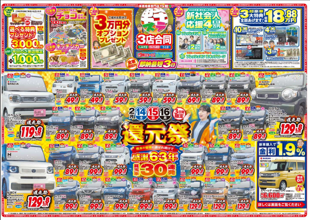 **2月7日(金)〜9日(日)の3日間、軽ステ3店舗合同「還元祭」**を開催いたします。