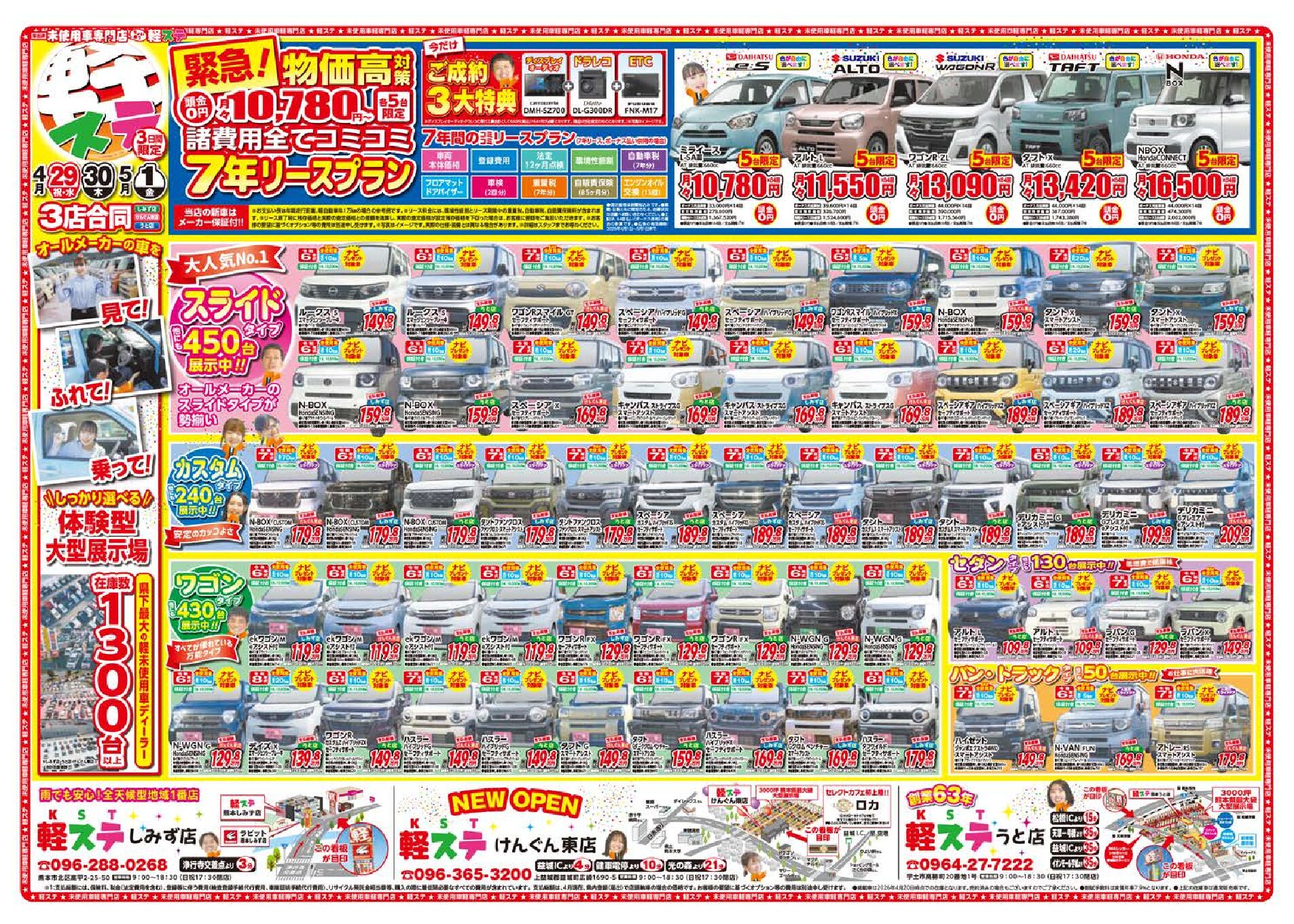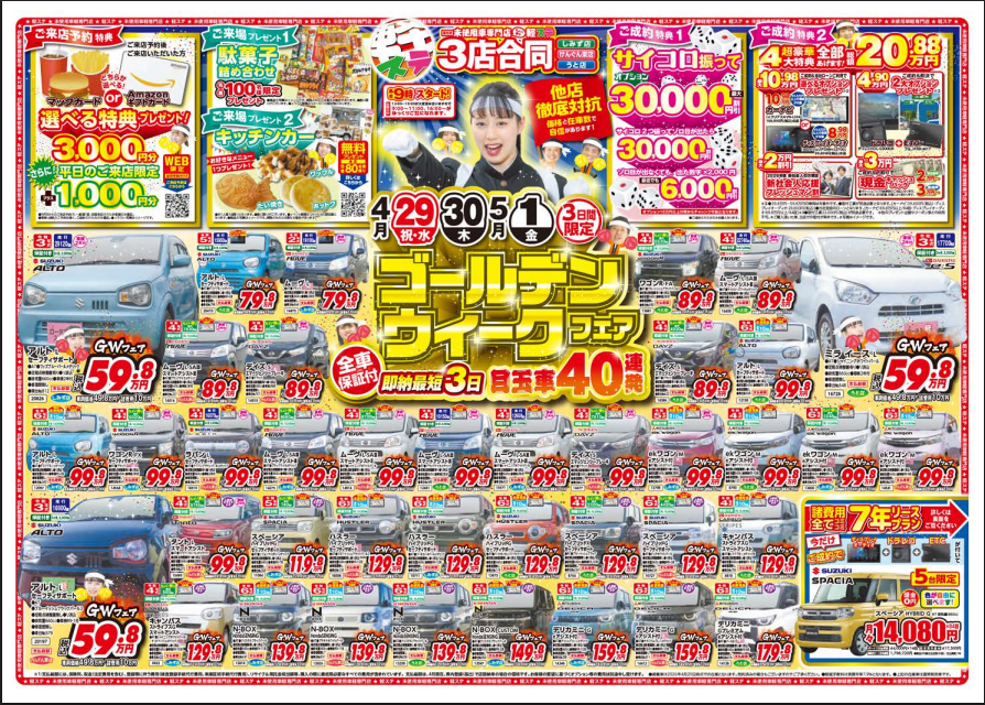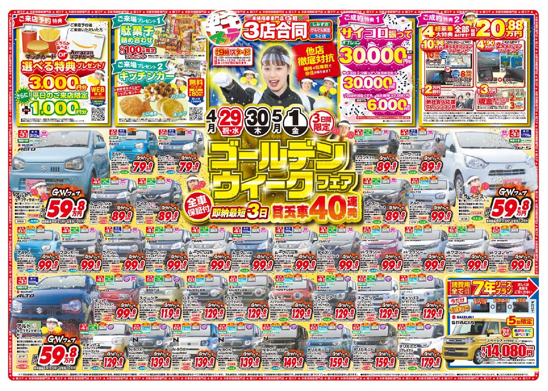 **4月25日(土)~4月27日(月)の3日間、軽ステ3店合同「大感謝祭」**を開催いたします!