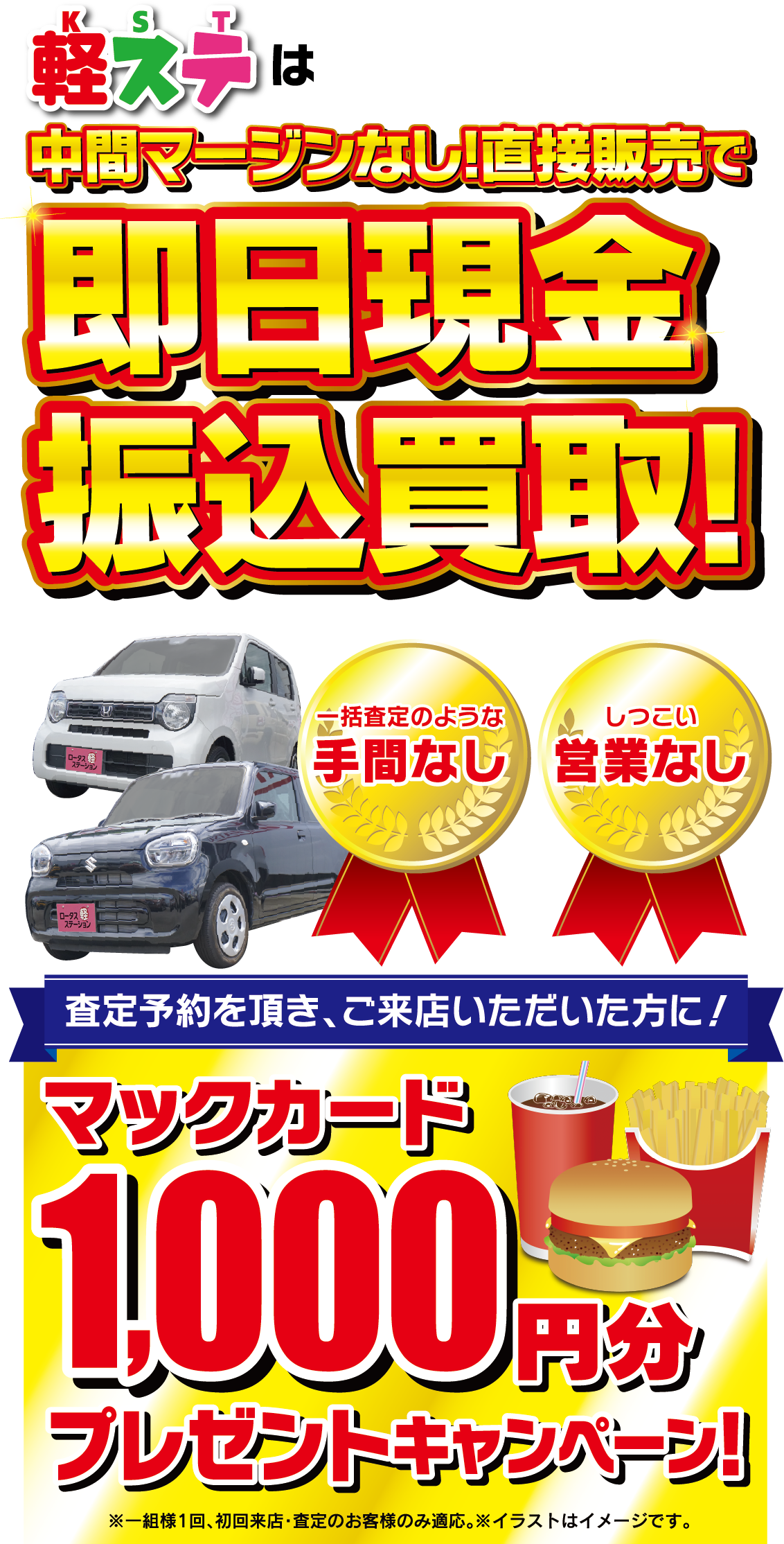 - 下取り:お車を購入することを条件に、現在のお車を引き取ること